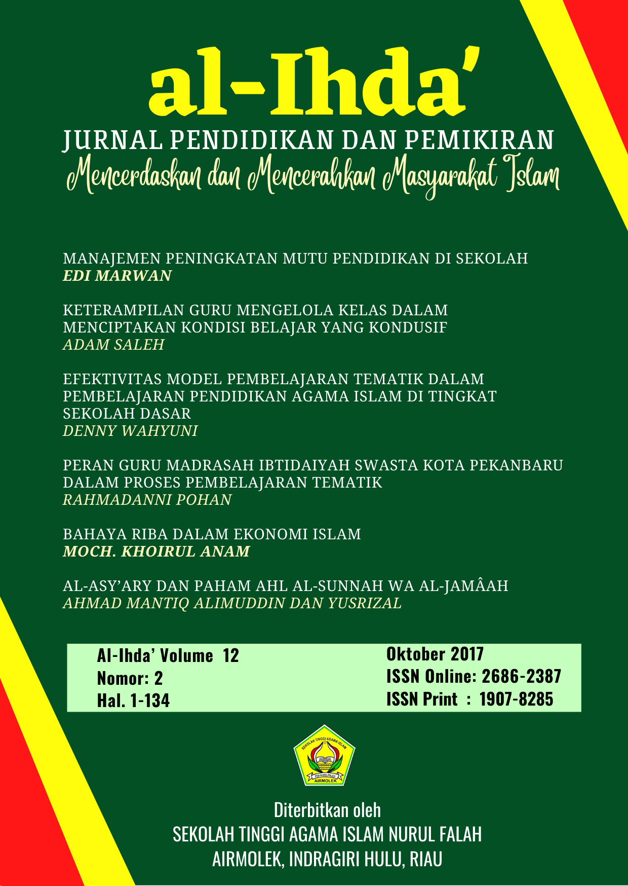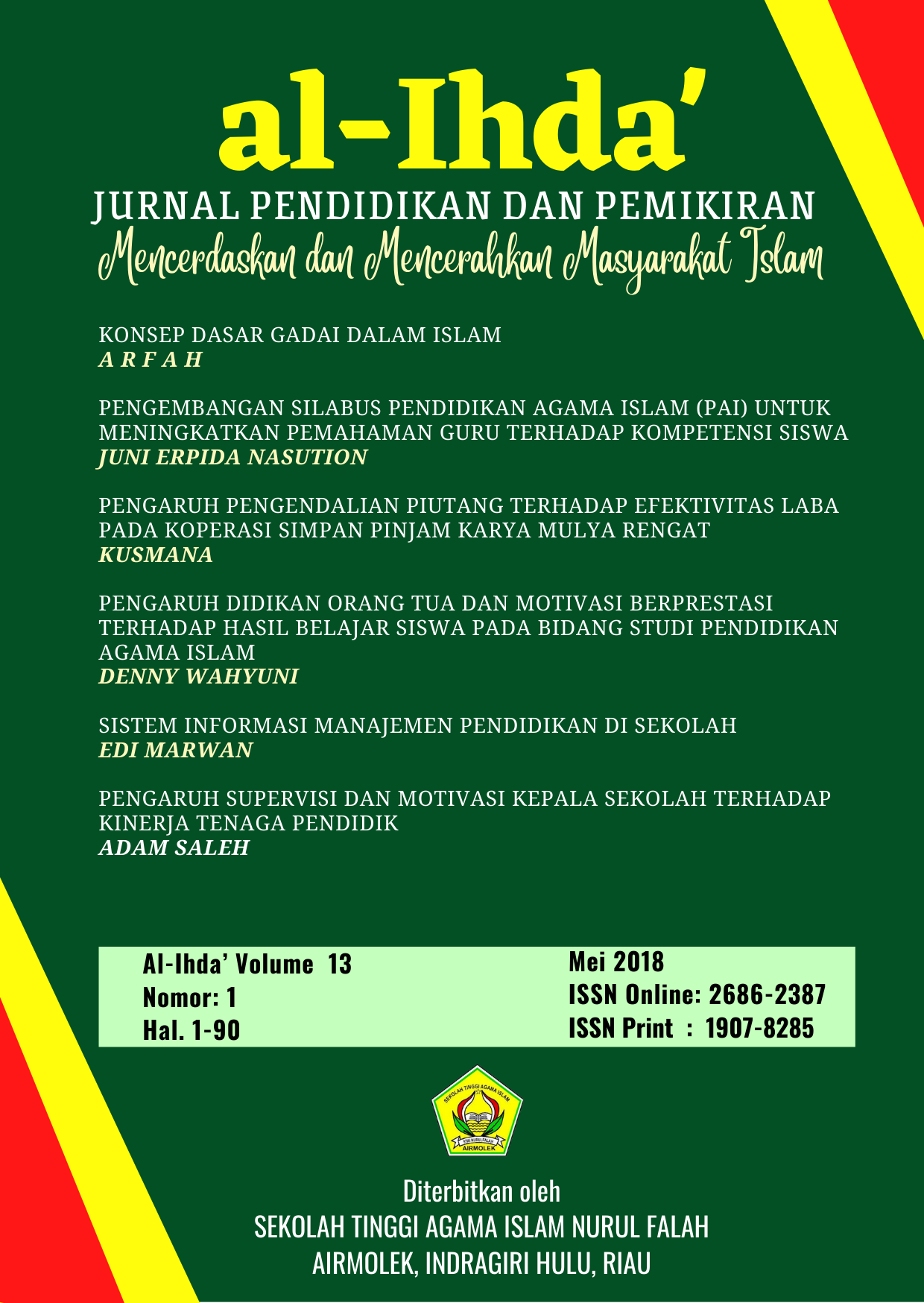 Vol. 13 No. 1 (2018)Al-Ihda': Jurnal Pendidikan dan Pemikiran is Jurnal Electronic which contains the results of research and literature studies related to the field of education, learning activities, learning strategies, teacher professionalism, students, education and education personnel, issues of educational institutions, educational environment and parenting. Al-Ihda': Jurnal Pendidikan dan Pemikiran is an National peer-reviewed journal dedicated to interchange for the results of high quality research in all aspect of education and teaching. The journal publishes state-of-art papers in fundamental theory, experiments and simulation, as well as applications, with a systematic proposed method, sufficient review on previous works, expanded discussion and concise conclusion. As our commitment to the advancement of education and teaching, the Al-Ihda': Jurnal Pendidikan dan Pemikiran follows the open access policy that allows the published articles freely available online without any subscription. -